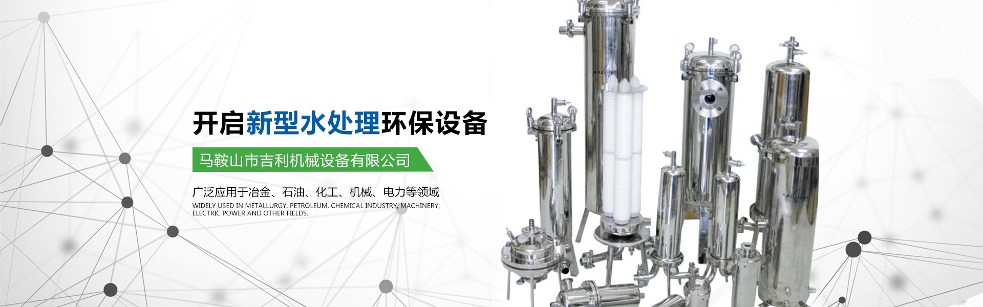 馬鞍山市吉利機(jī)械設(shè)備有限公司位于江南名城一馬鞍山市,交通十分便利。公司具有獨(dú)立法人資格,是集水處理設(shè)備的研發(fā)、設(shè)計(jì)、生產(chǎn)、銷售為一體的專業(yè)型企業(yè)。公司的主要產(chǎn)品有高中速過濾器、纖維球過濾器、新型除油過濾器、無閥過濾器、加藥裝置、管道全自動(dòng)過濾器、淺層砂過濾器、攪拌機(jī)、沙水分離器、管道靜態(tài)混合器、化水設(shè)備、反滲透等膜處理設(shè)備、空氣過濾器等。公司所研發(fā)的產(chǎn)品有占地少、處理效果好、投資省、操作管理方便的優(yōu)點(diǎn),受到客戶的一致好評。